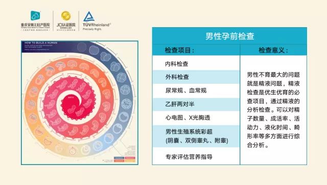孕育生命的征程已经开始,尽管前路漫漫,困难重重,相信作为准爸爸的你一定会尽到一名做父亲的义务与责任。孕育生命,不只是准妈妈一个人的事,身为准爸爸,此刻的你准备好了么?孕育健康聪明的宝宝是每个家庭的愿望,重庆安琪儿妇产医院倡导优生优育,严格按照标准,制定专业科学的备孕检查项目,并为每个备孕的家庭制定个性化的备孕计划,为您提供的指导。科学规范的孕前检查标准,让宝宝赢在起跑线。孕前检查虽然是十分个人化的事情,但背后承载的却是对夫妻双方、下一代直至家庭的责任,作为准爸爸的你,请守护好宝宝健康的第一道防线。