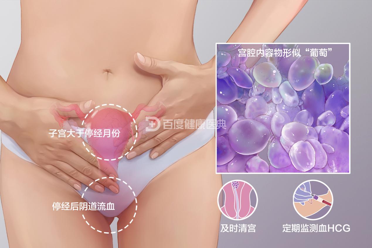 葡萄胎形似葡萄,是胚胎异常发育形成的,会引起反复出血、下腹胀痛,有时出血中会带有水泡样组织,一旦发现需及时就医治疗,避免出现大出血、休克等严重后果。