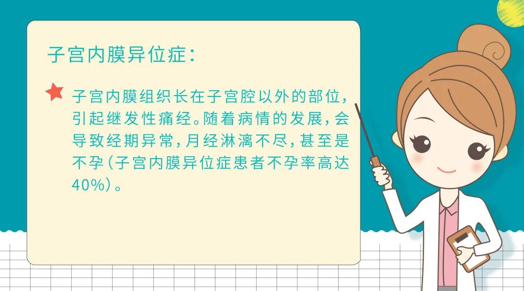 是由生殖器官的器质性病变引起的,此时,“痛经”即是较为强烈的身体警报,因为导致继发性痛经的原因往往比“疼痛”更可怕。
