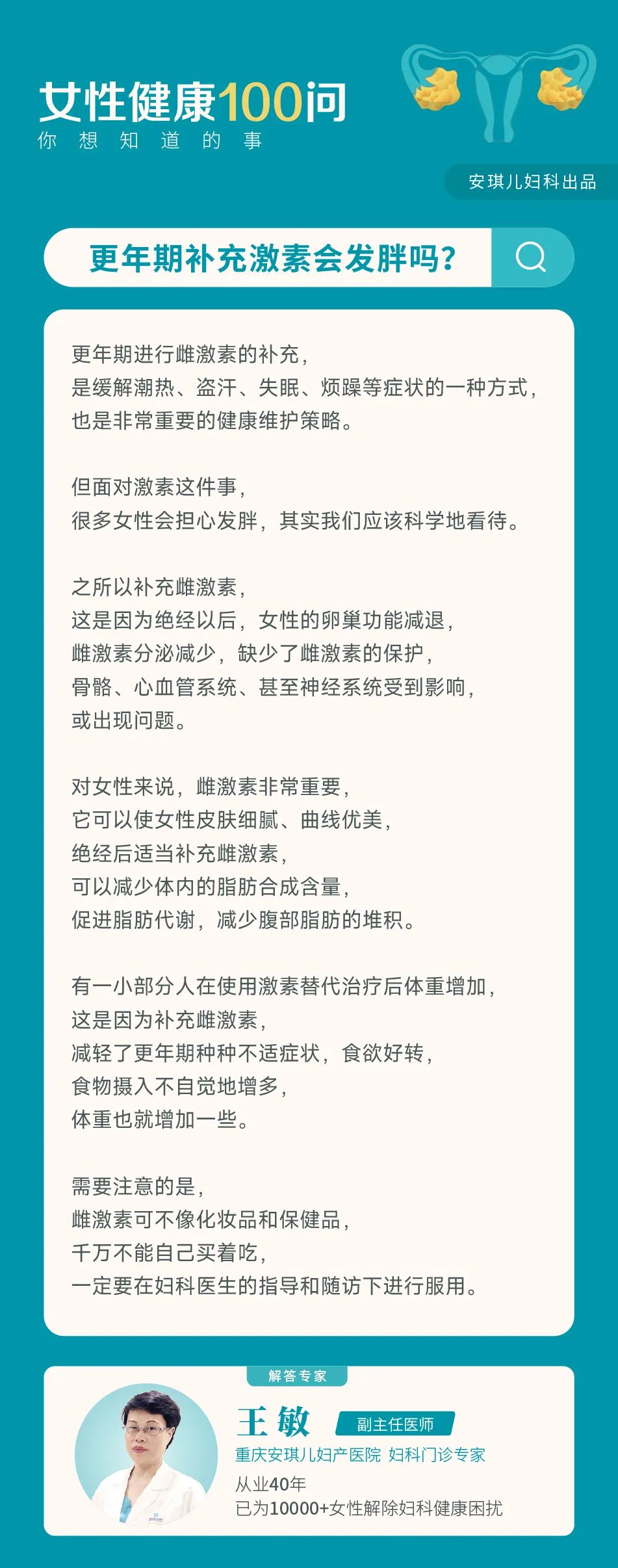 主页 > 走进Angel > 医院新闻 > 女性健康100问丨更年期补充激素会发胖吗? 2022-10-10 10:01 279 上一篇:女性雌激素不足老得快,补充雌激素很重要 下一篇:这些疾病不必非得开腹手术,腹腔镜也能“一招制胜” 相关阅读/reading 女性健康100问丨剖腹产伤口什么时候能愈 女性健康100问丨“安环”避孕能一劳永逸 女性健康100问丨产后子宫恢复要多长时间 女性健康100问丨孕产期如何预防盆底功能 女性健康100问丨查出HPV阳性,该怎么办 相关科室/The relevant departments 产科 月子 妇科 新生儿 儿保 生殖医学