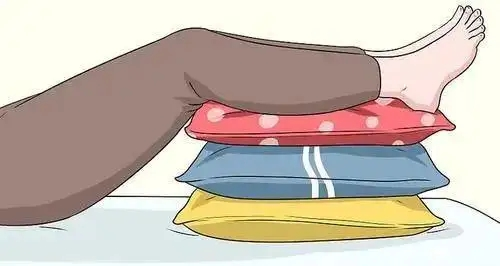 ●睡前,用枕头垫高小腿,通过伸展、按摩腿部,旋转踝关节来缓解