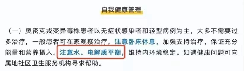 其实《新型冠状病毒阳性感染者居家康复专家指引》早就特别强调了感染新冠病毒后要“注意水、电解质平衡”。