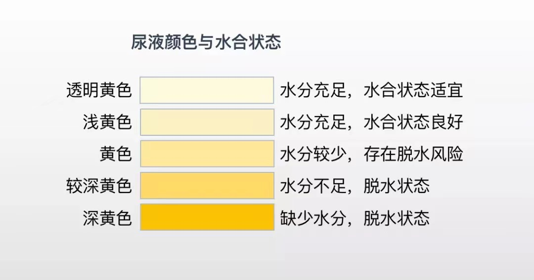 淡黄色且透明为正常,越缺水颜色越深。当然如果服用了复合维生素B、维生素B2、黄连素等,即使充足补水,也可能会呈现深黄色,要注意辨别。